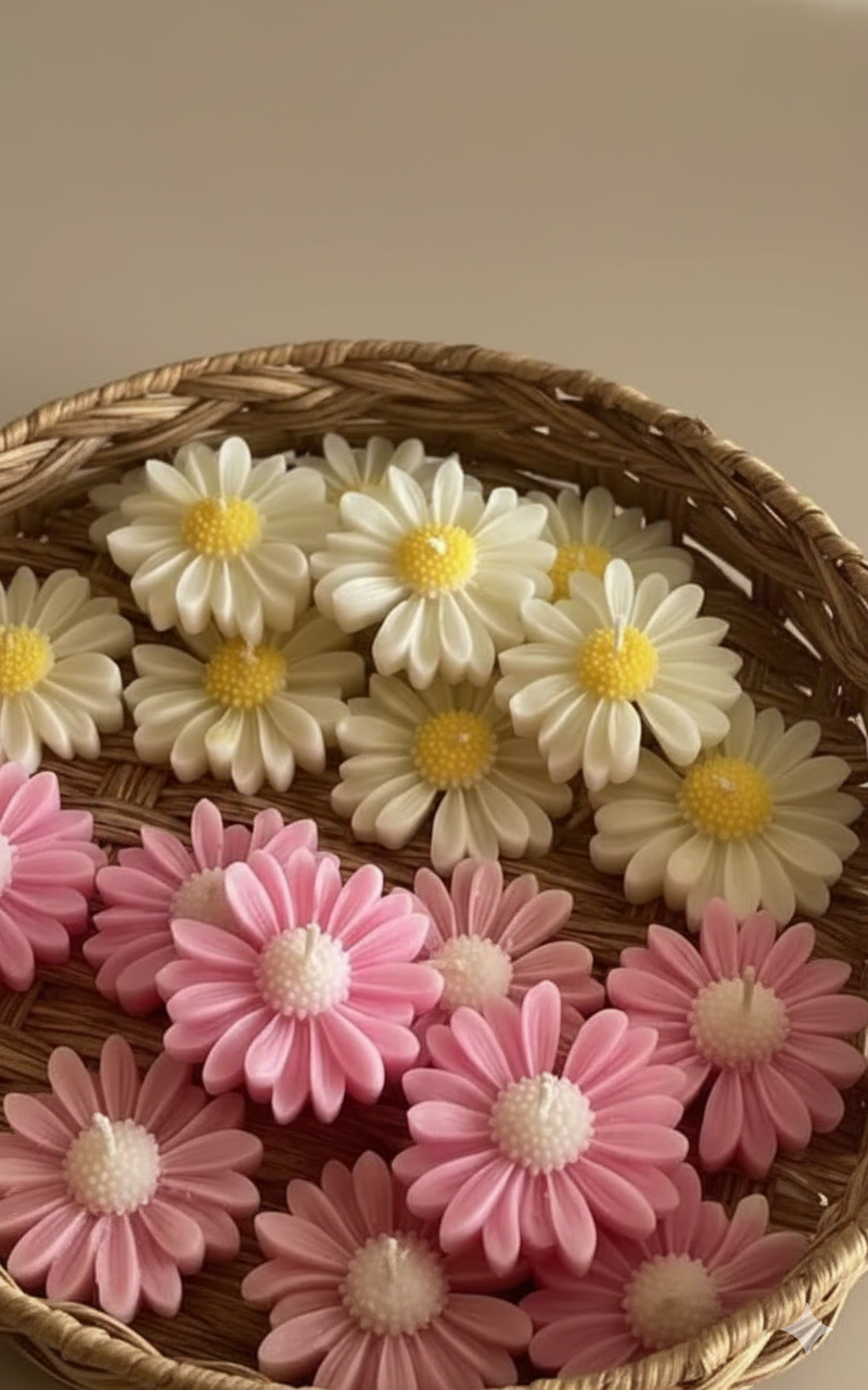 These are handcrafted floating candles shaped like delicate daisy flowers, designed to float gracefully on water, creating a serene and decorative ambiance for your home or events.