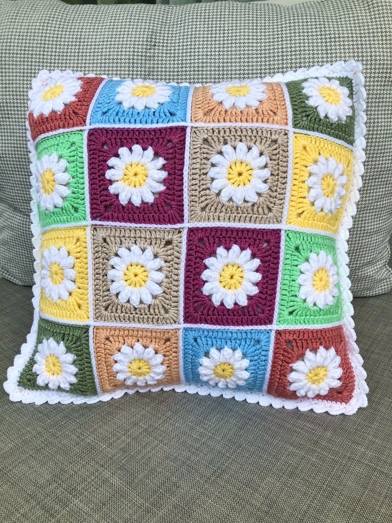Handmade Crochet Cushion Cover,Granny Square Flower Pillowcase,Boho Patchwork Throw Pillow,Vintage Home Decor,Modern Daisy Knit Sofa Pillow.