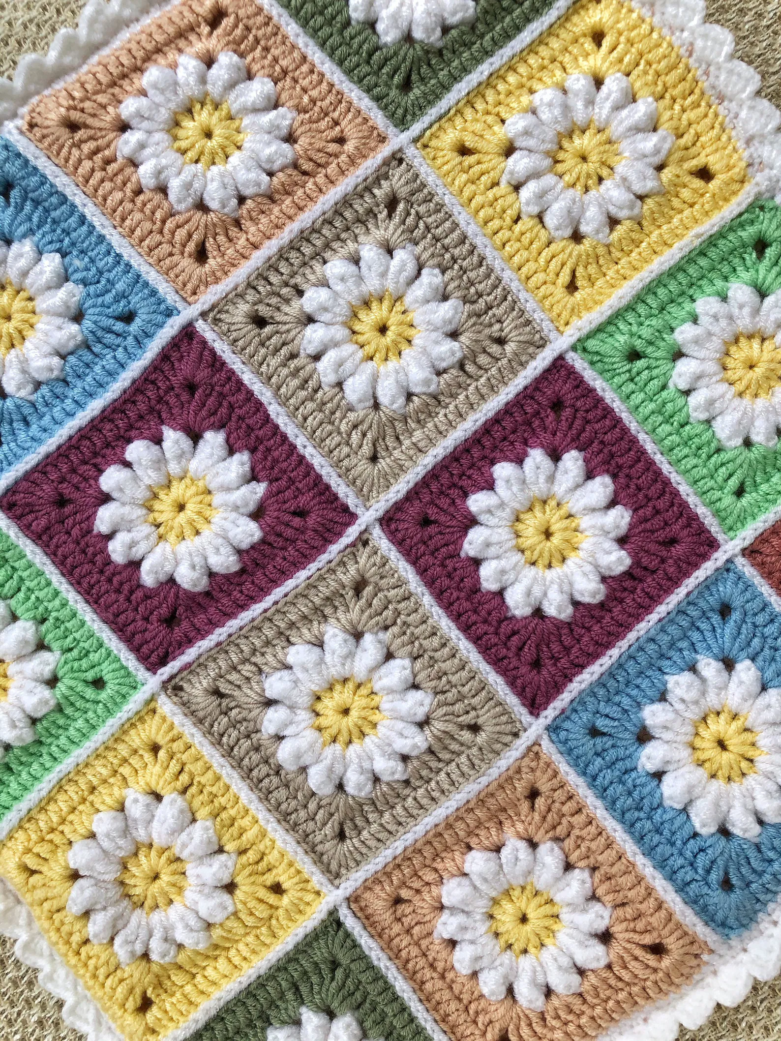 Granny Square Flower Design – Classic boho-style pattern with vibrant colors for a charming look.