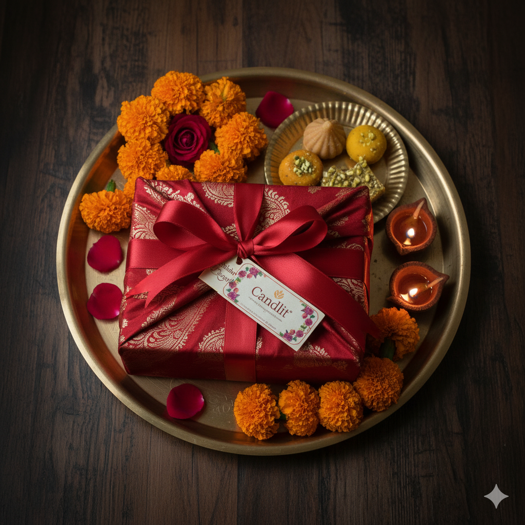 Each hamper includes a set of elegant, hand-poured candles in mini cups, designed to bring warmth, light, and festive vibes to your home. Perfect for gifting or decorating, these candles spread positivity and enhance your Diwali celebrations.