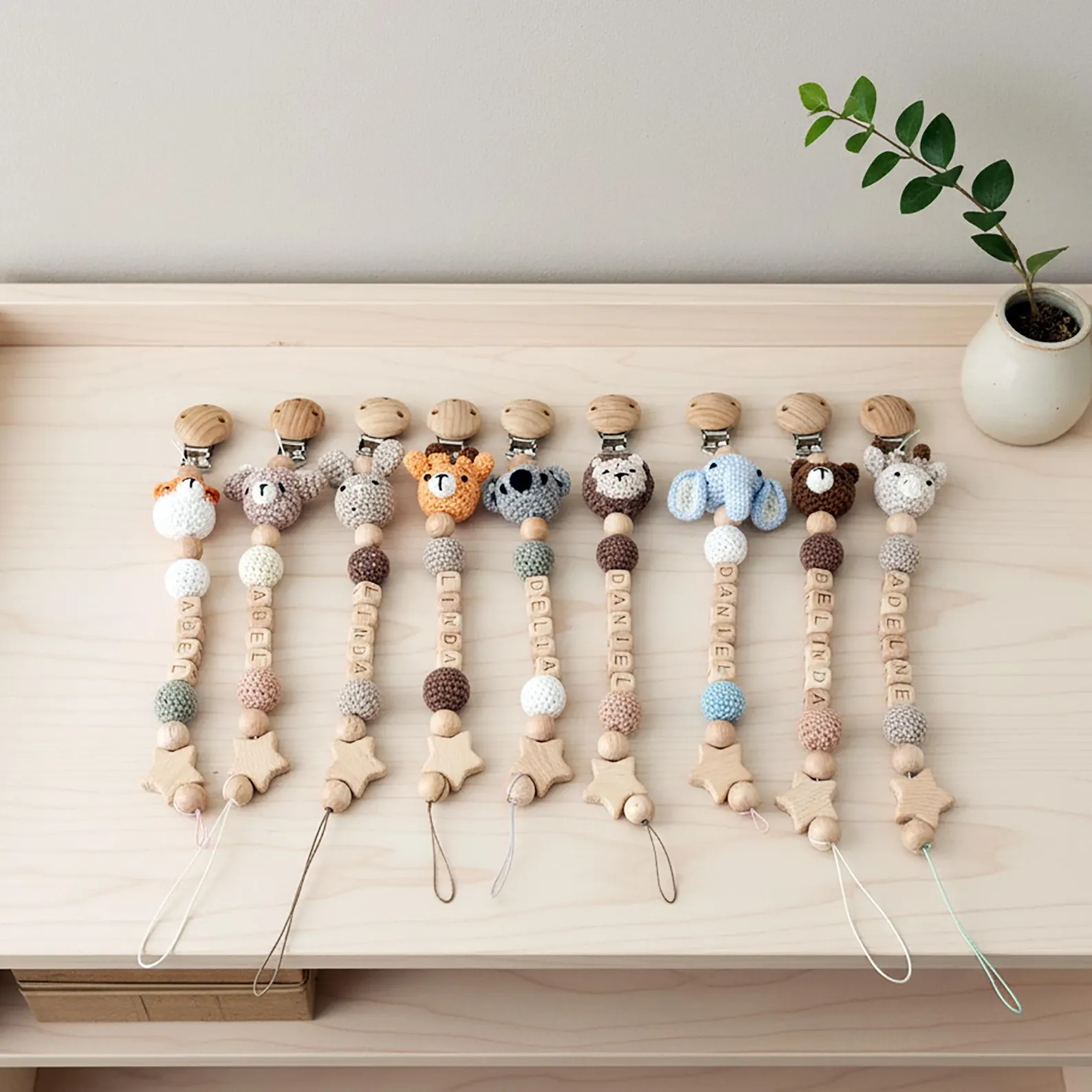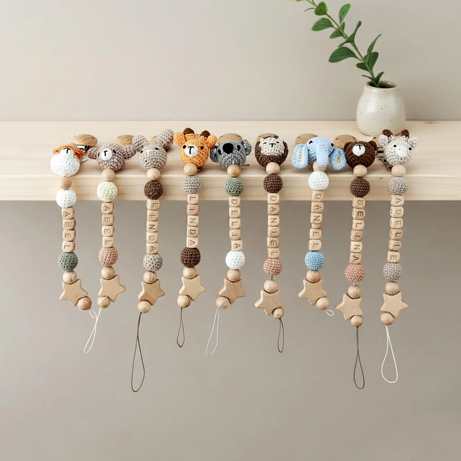 Crochet Pacifier Clip with Name – Personalized Baby Dummy Chain, Handmade Shower Gift.