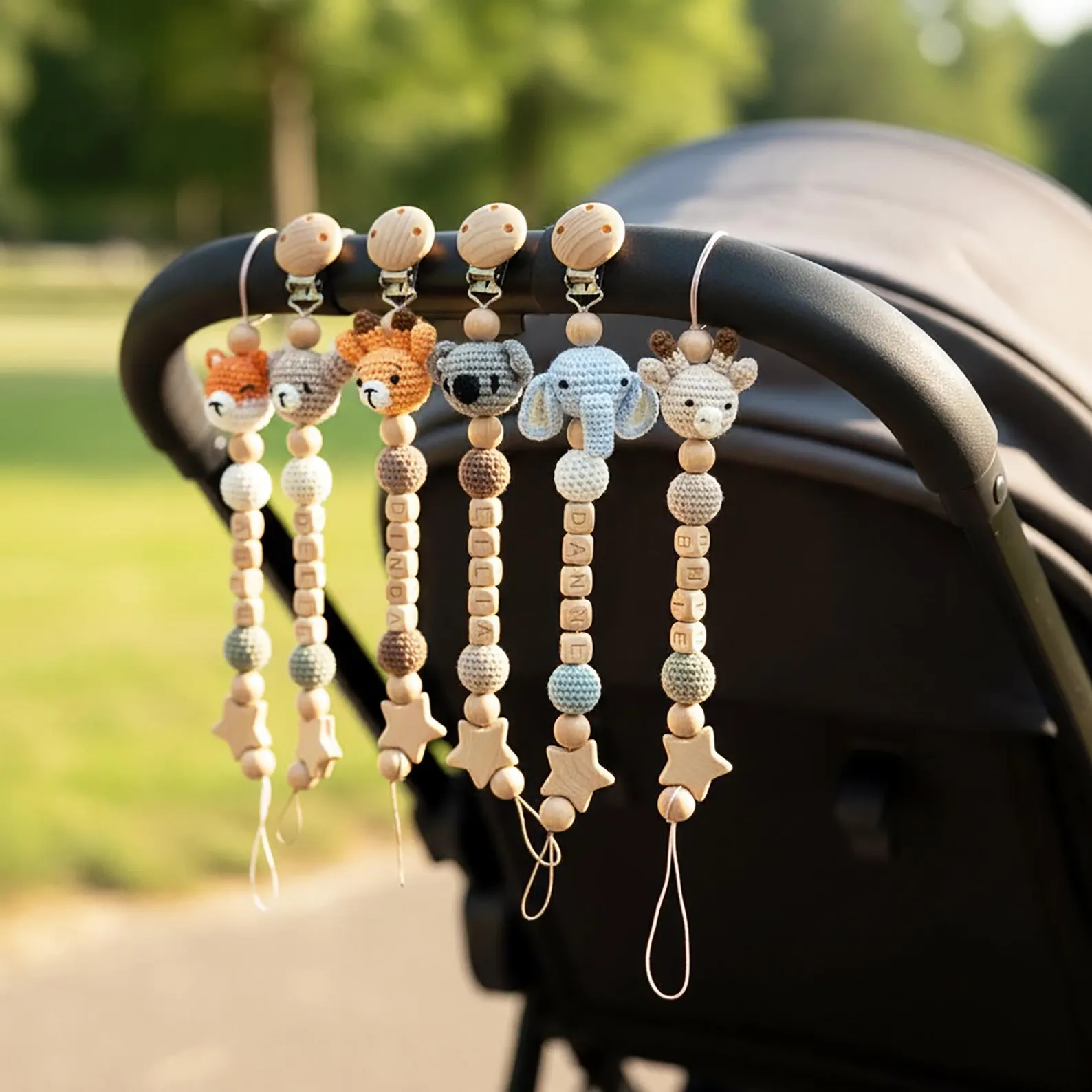 Keep your baby’s pacifier always within reach with our Crochet Pacifier Clip with Name. Handmade with love, this personalized dummy chain is both practical and stylish. The soft crochet beads and durable clip keep the pacifier secure, while the custom name adds a unique touch. Perfect as a baby shower gift, this handmade accessory is safe, eco-friendly, and designed to bring both comfort and convenience to parents and little ones.