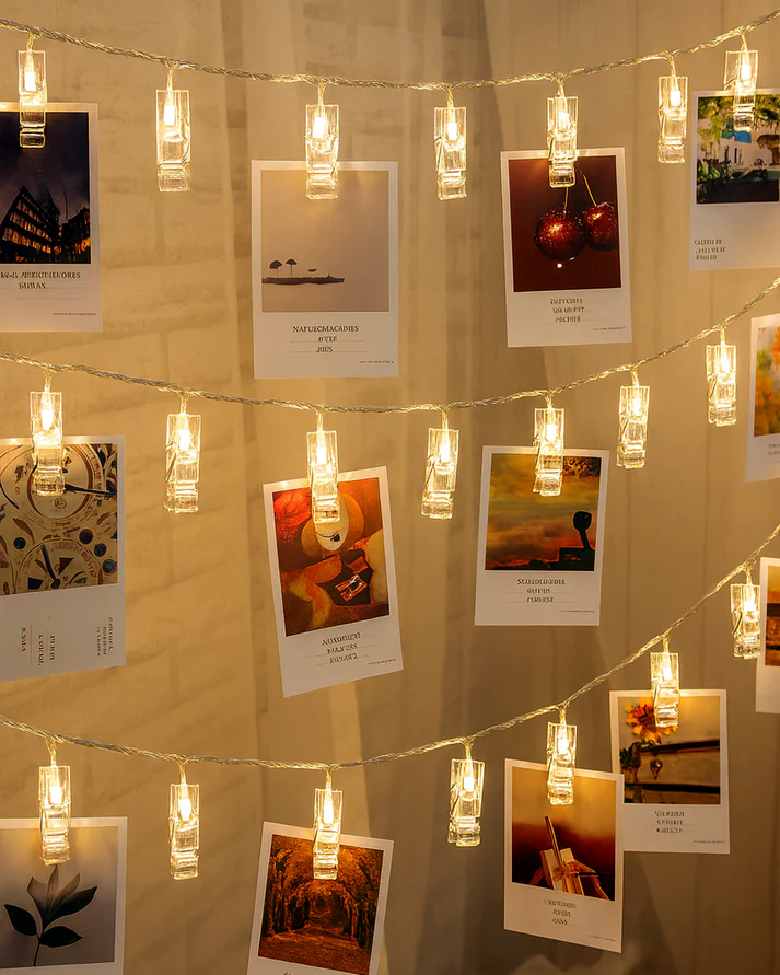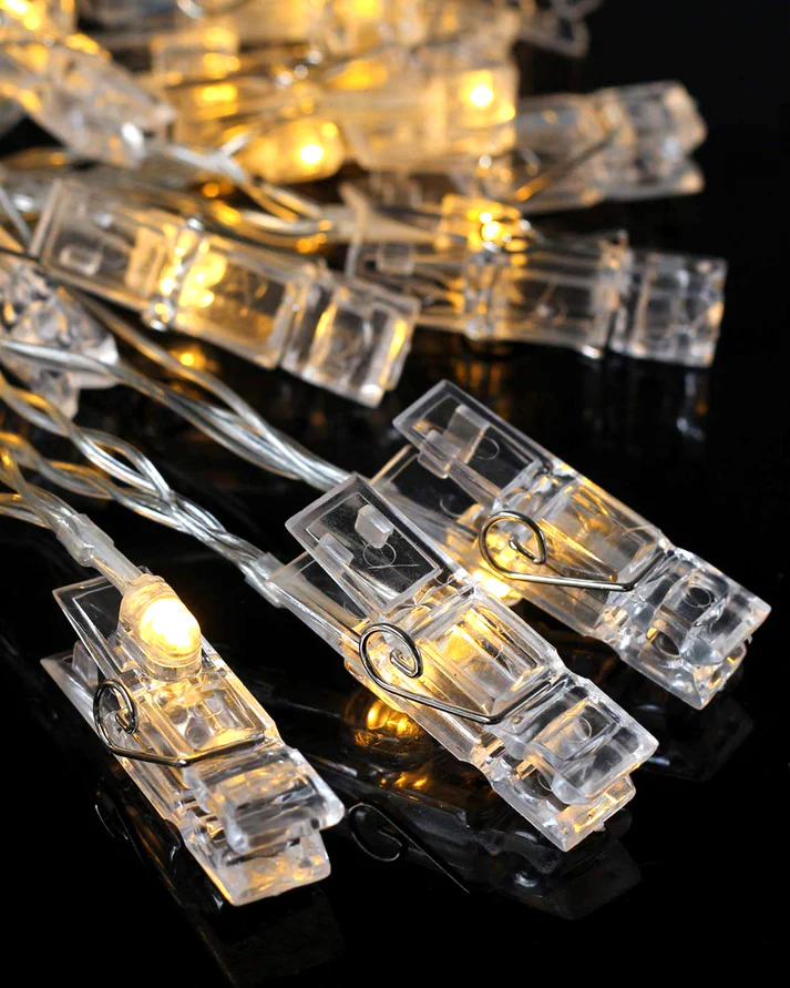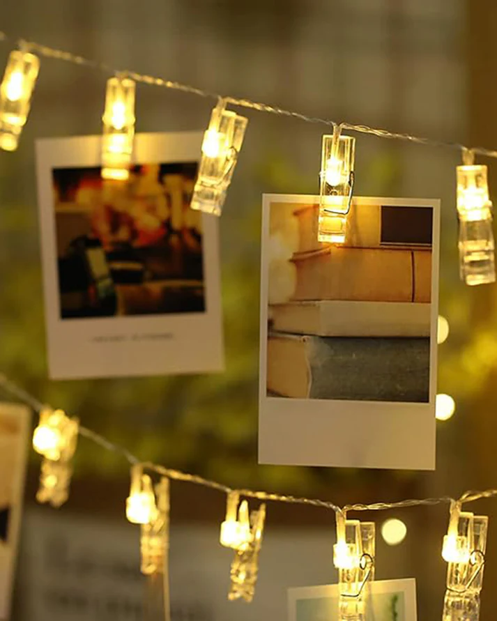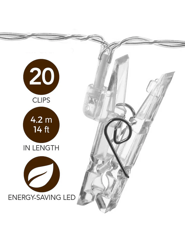 ✨ 20 photo-holding clips with warm white LEDs